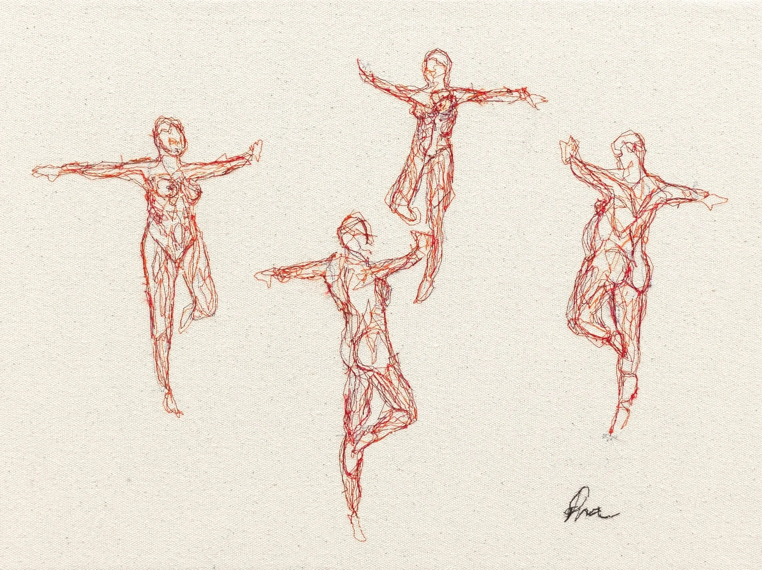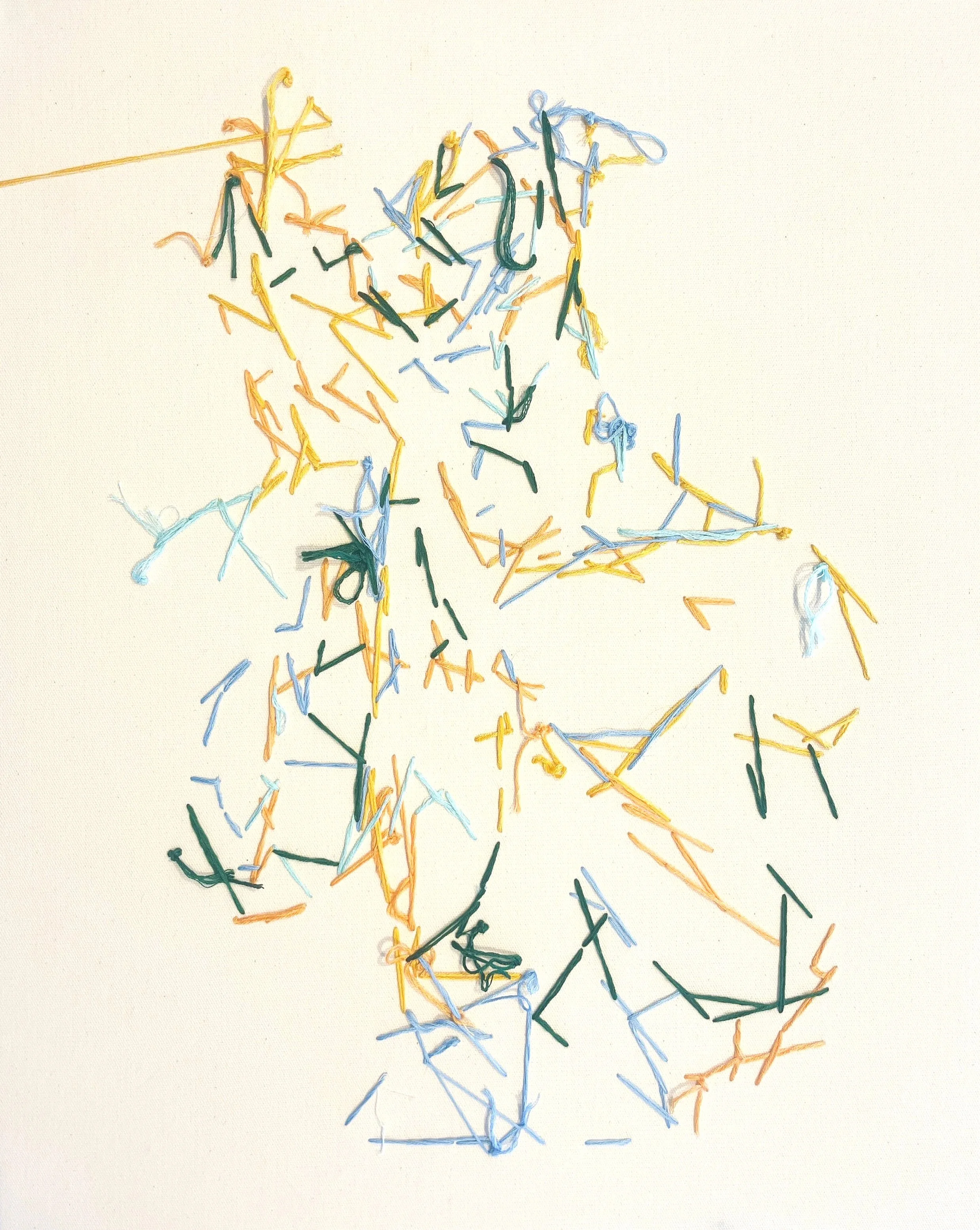 Embroidered thread on calico, 30 x 40 cm